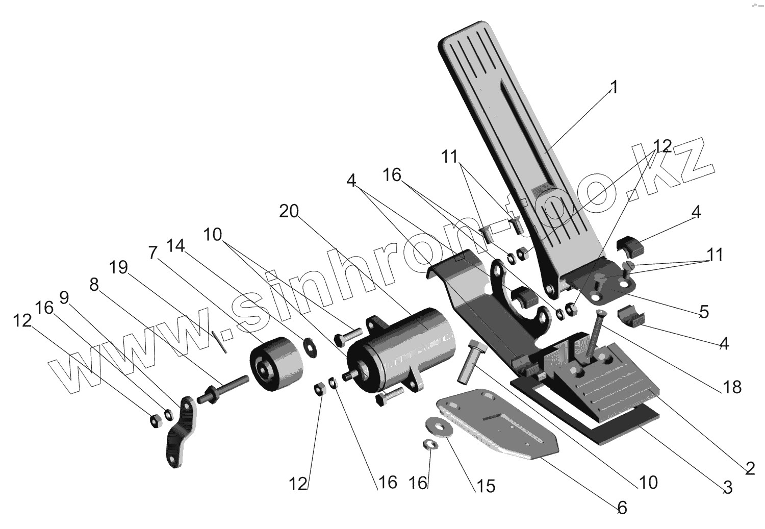 Каталог запасных частей к технике: МАЗ-551669. Установка педали управления двигателем 642268-1108002