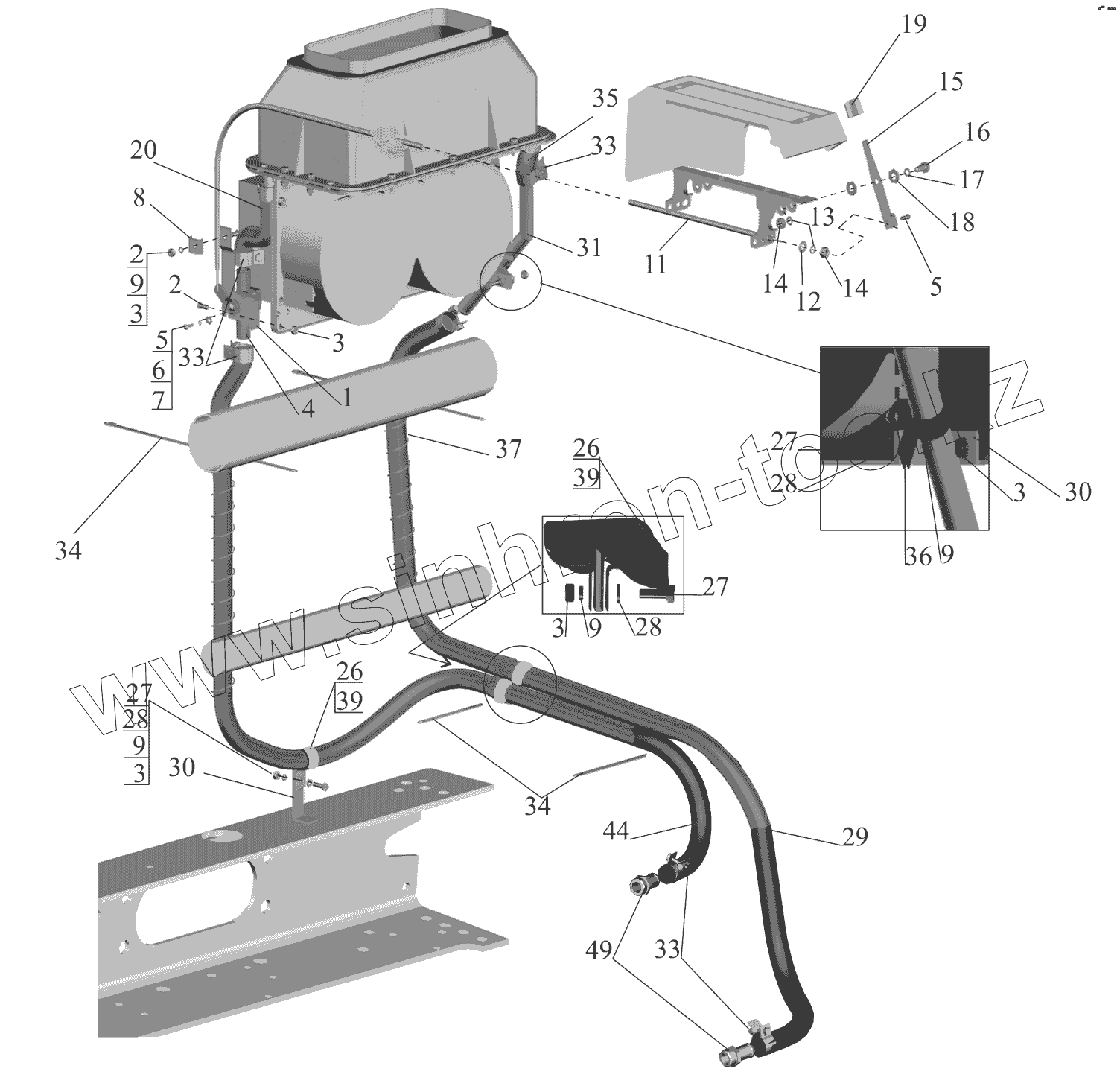 Каталог запасных частей к технике: МАЗ-551669. Установка шлангов и крана управления отопителем