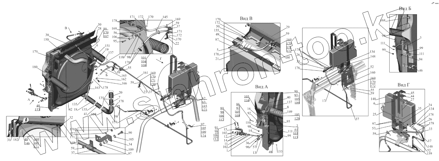 Каталог запасных частей к технике: МАЗ-551669. Установка системы охлаждения 551669-1300005-020