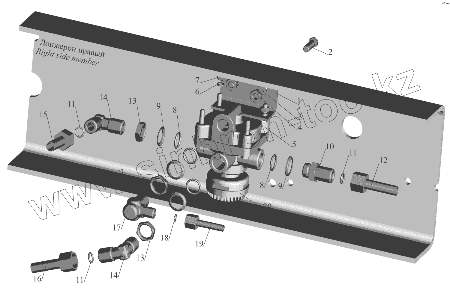 Каталог запасных частей к технике: МАЗ-551669. Установка ускорительного клапана и присоединительной арматуры