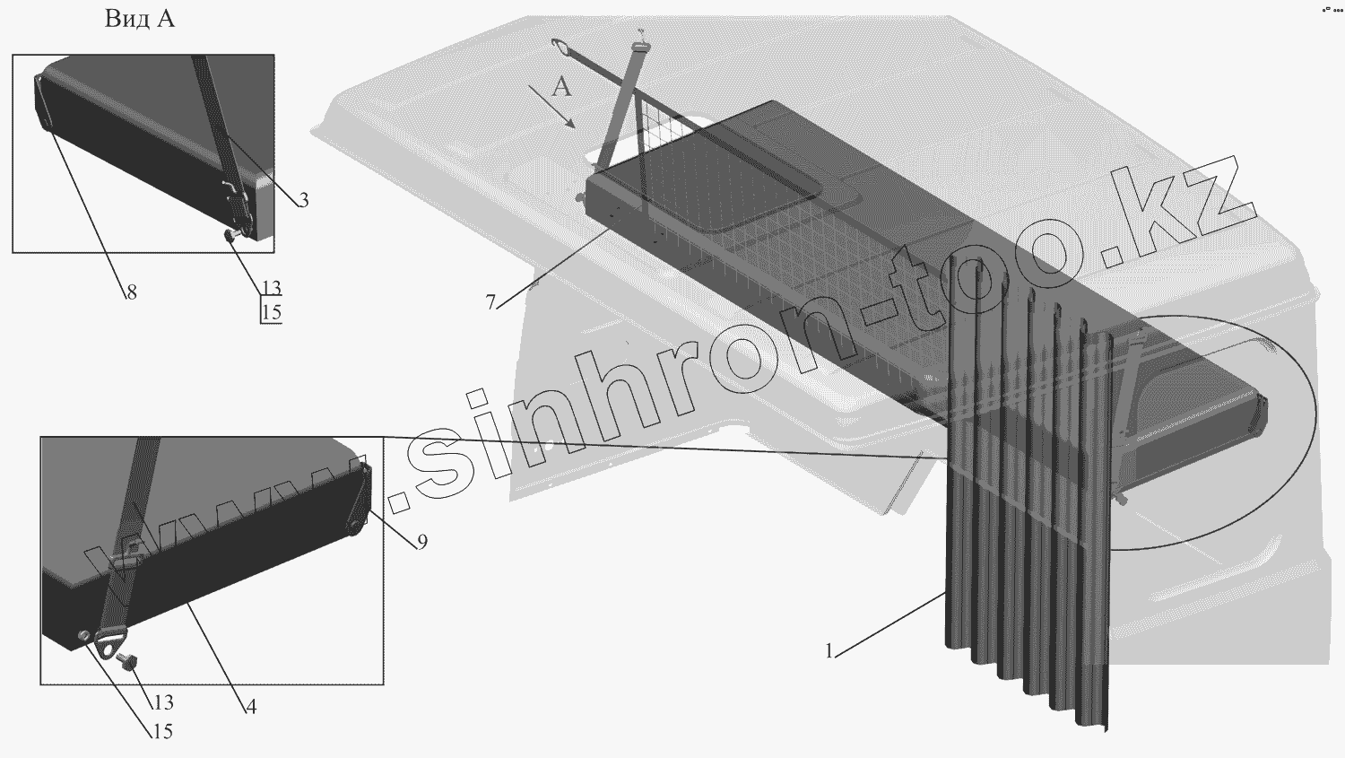 Каталог запасных частей к технике: МАЗ-551669. Установка верхнего спального места 64221-8200011