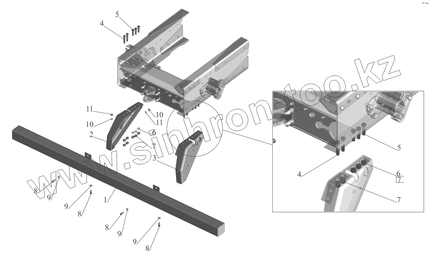 Каталог запасных частей к технике: МАЗ-551669. Установка заднего бампера