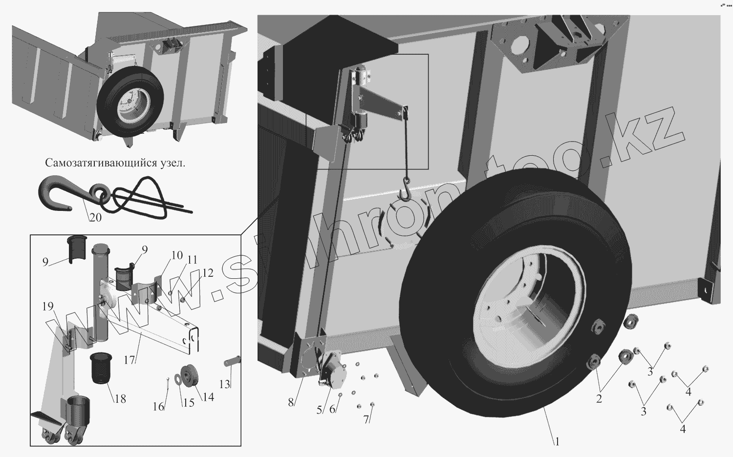 Каталог запасных частей к технике: МАЗ-551669. Установка запасного колеса 551607-3100001-40