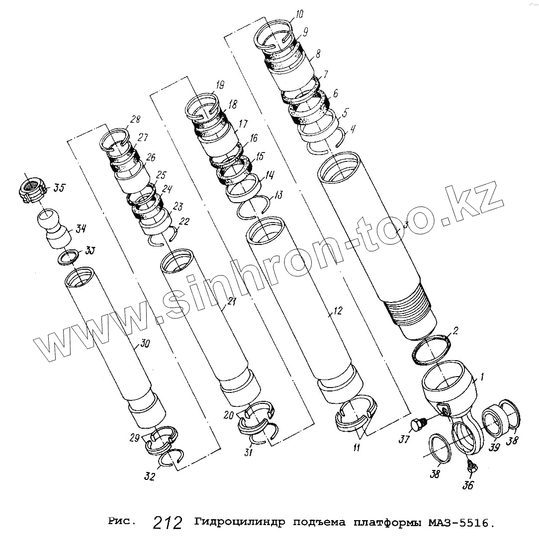 Каталог запасных частей к технике: МАЗ-5516. Гидроцилиндр подъема платформы МАЗ-5516