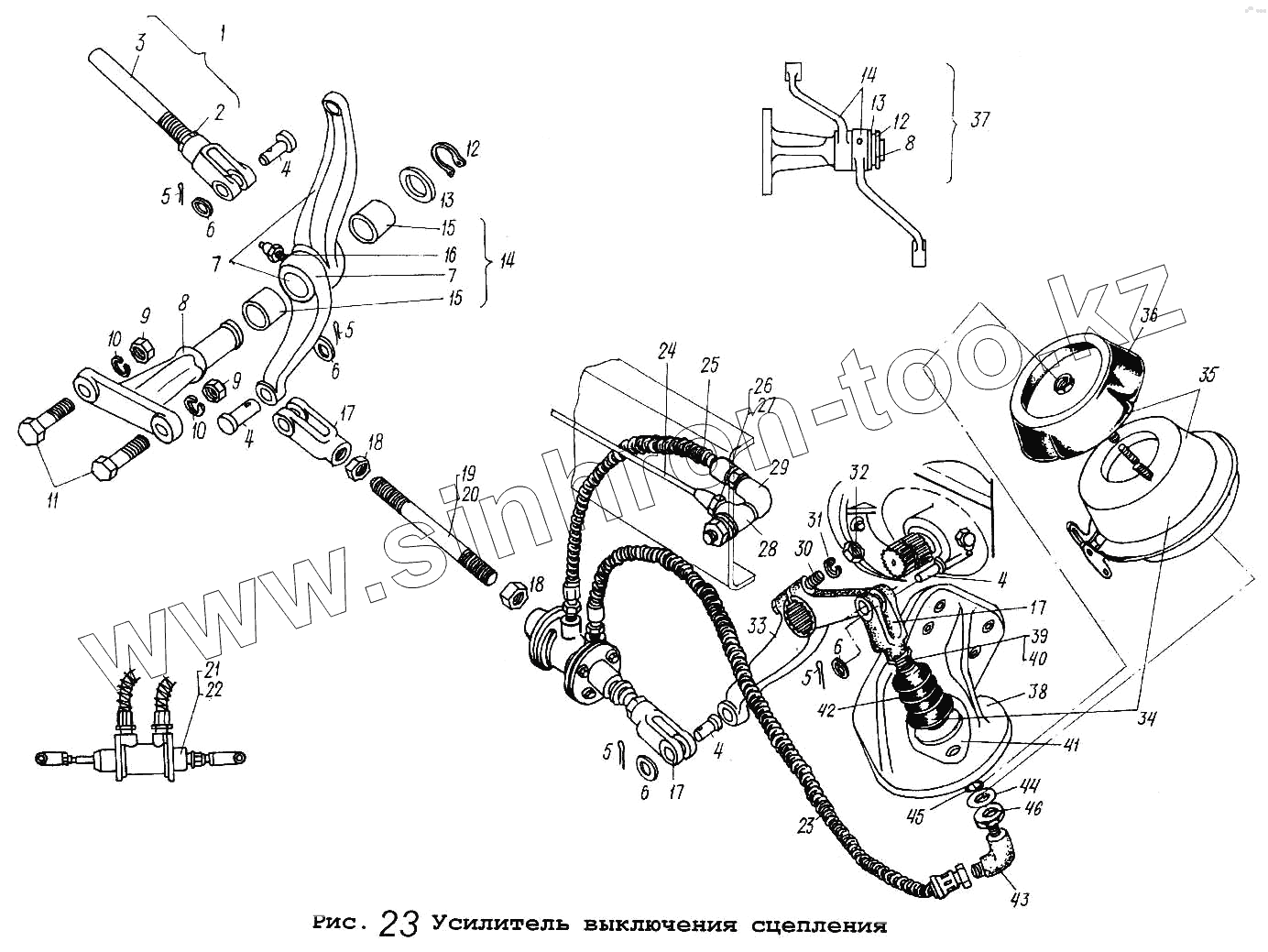 Каталог запасных частей к технике: МАЗ-5516. Усилитель выключения сцепления