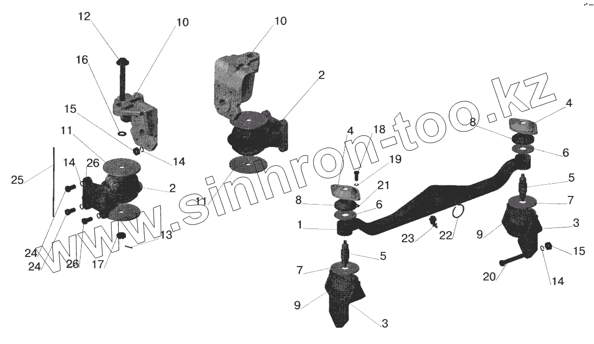 Каталог запасных частей к технике: МАЗ-5516 (2003). Крепление двигателя на автомобиле МАЗ-551605