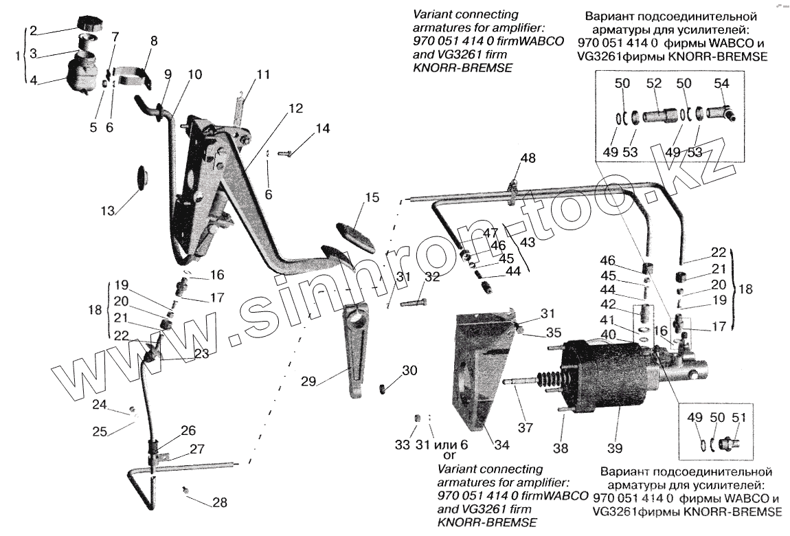 Каталог запасных частей к технике: МАЗ-5516 (2003). Механизм управления сцеплением