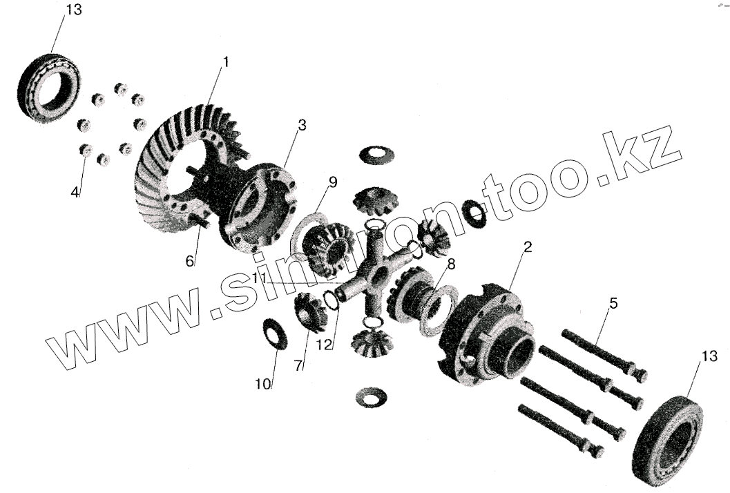 Каталог запасных частей к технике: МАЗ-5516 (2003). Мост задний МАЗ-543208. Дифференциал