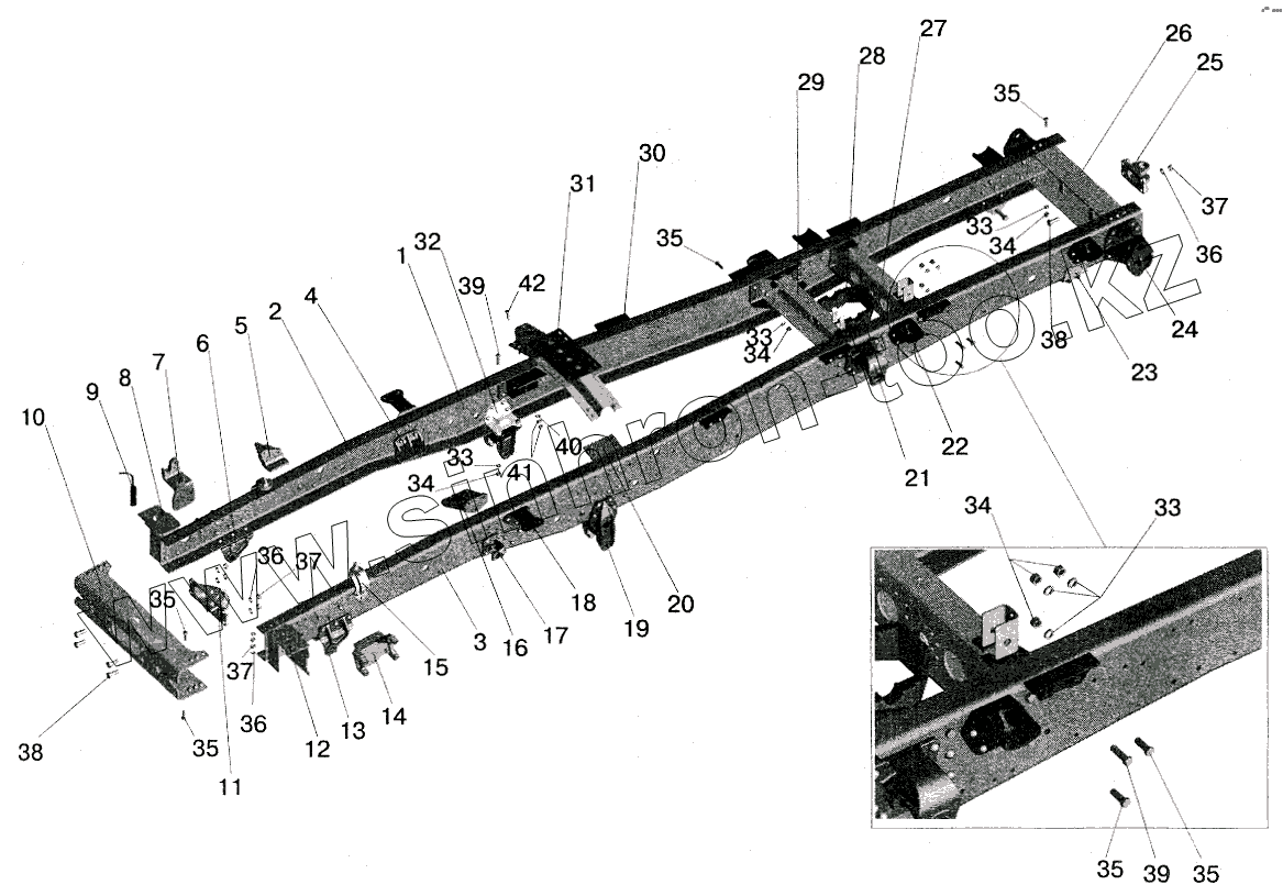 Каталог запасных частей к технике: МАЗ-5516 (2003). Рама 555102