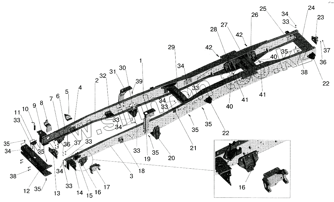 Каталог запасных частей к технике: МАЗ-5516 (2003). Рама 642208, 642205-рессорная подвеска