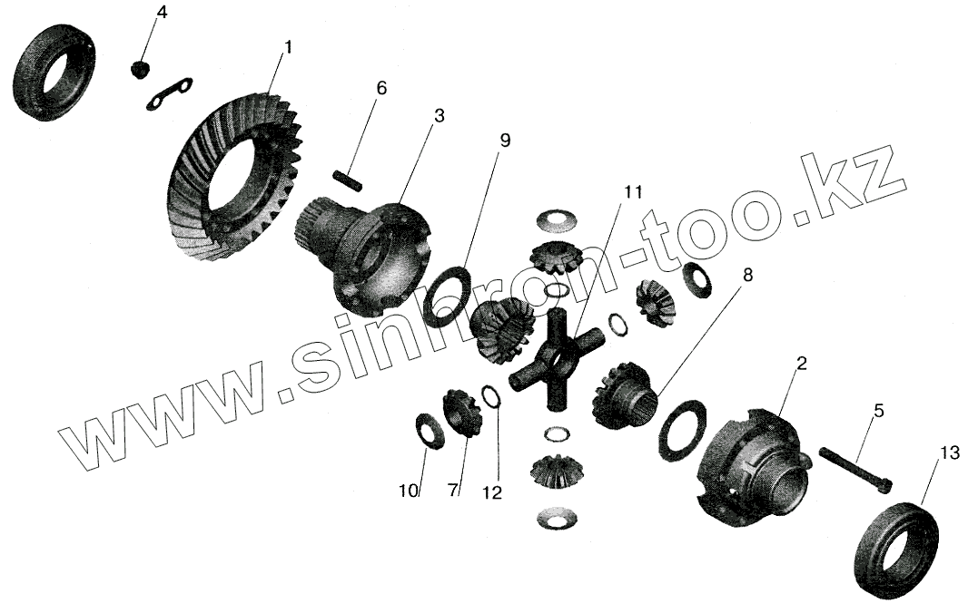 Каталог запасных частей к технике: МАЗ-5516 (2003). Редуктор среднего моста. Дифференциал