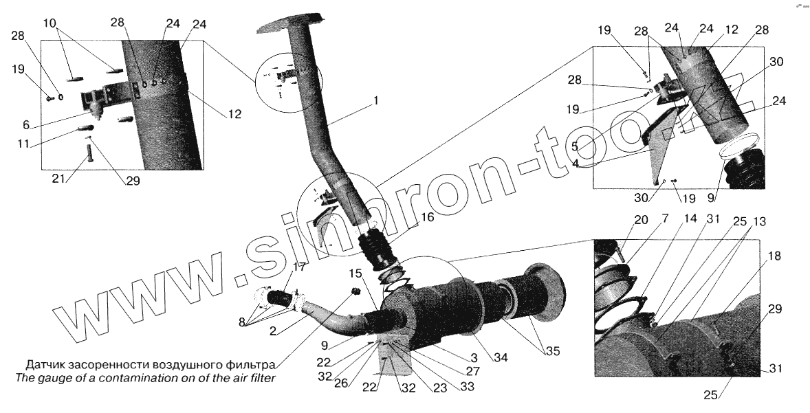 Каталог запасных частей к технике: МАЗ-5516 (2003). Система питания воздухом МАЗ-551605
