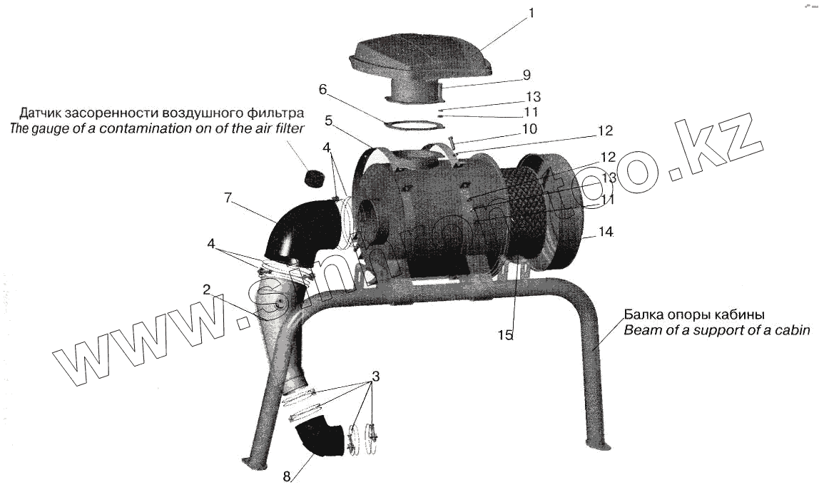 Каталог запасных частей к технике: МАЗ-5516 (2003). Система питания воздухом МАЗ-555102