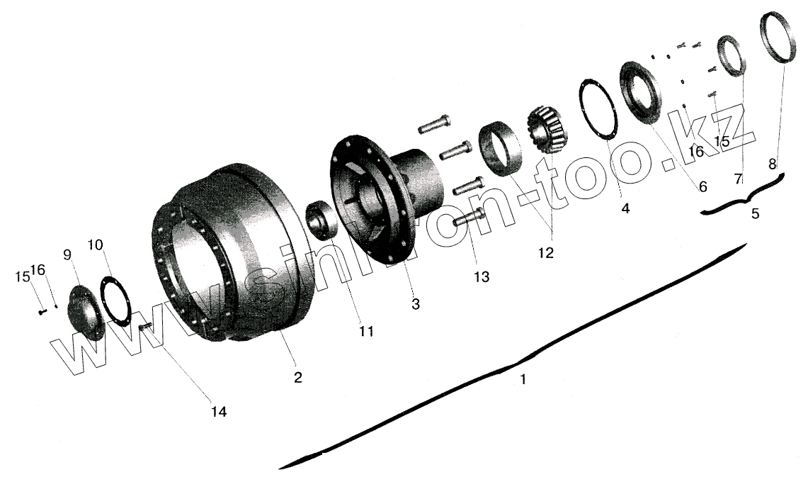 Каталог запасных частей к технике: МАЗ-5516 (2003). Ступица переднего колеса