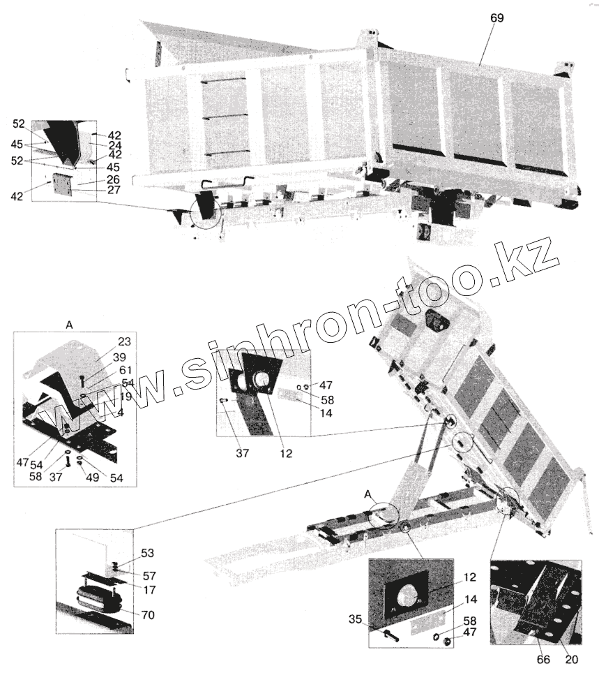 Каталог запасных частей к технике: МАЗ-5516 (2003). Установка платформы 5516-8500020-070