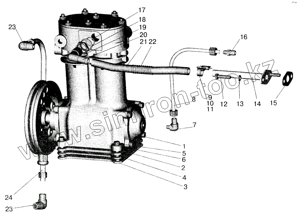 Каталог запасных частей к технике: МАЗ-5516 (2003). Установка пневмокомпрессора