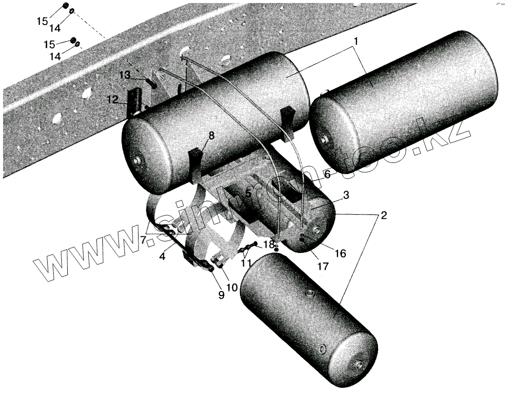 Каталог запасных частей к технике: МАЗ-5516 (2003). Установка ресиверов МАЗ-561605, 561603