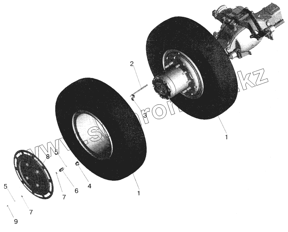 Каталог запасных частей к технике: МАЗ-5516 (2003). Установка задних колес