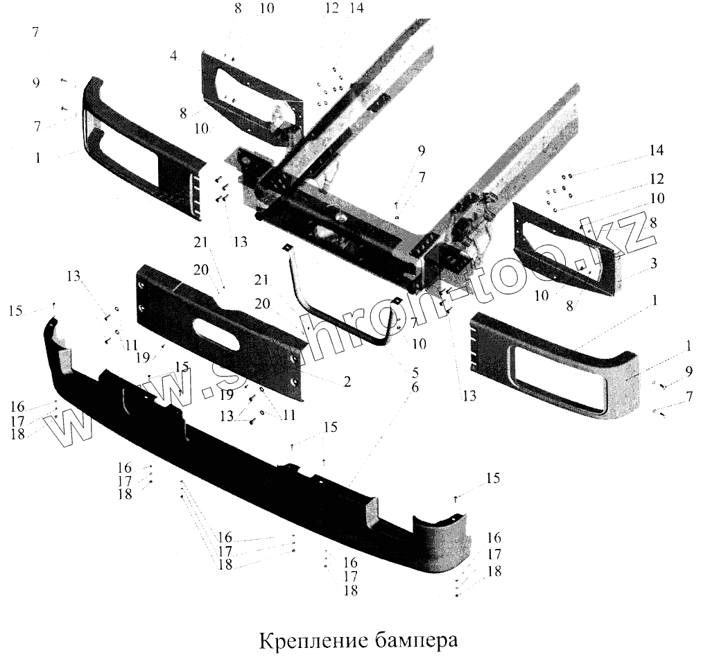 Каталог запасных частей к технике: МАЗ-5516А5. Крепление бампера