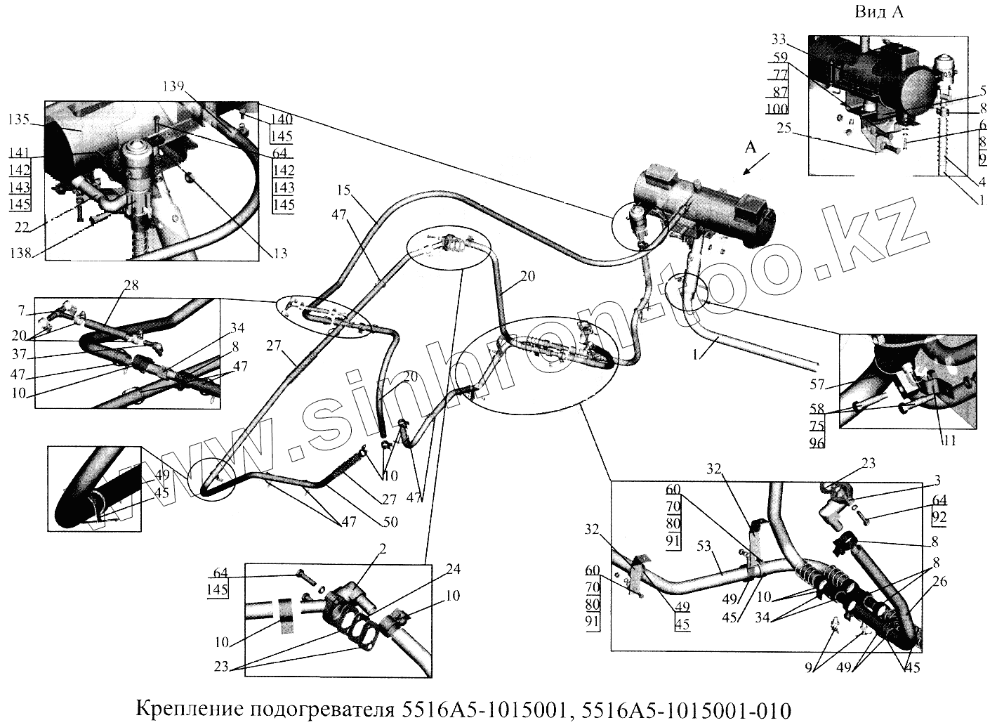 Каталог запасных частей к технике: МАЗ-5516А5. Крепление подогревателя 5516А5-1015001, 5516А5-1015001-010