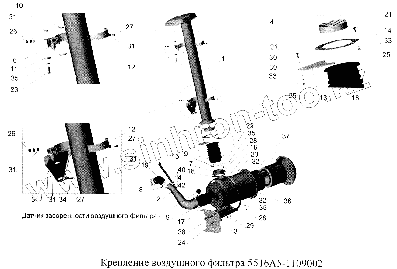 Каталог запасных частей к технике: МАЗ-5516А5. Крепление воздушного фильтра 5516А5-1109002