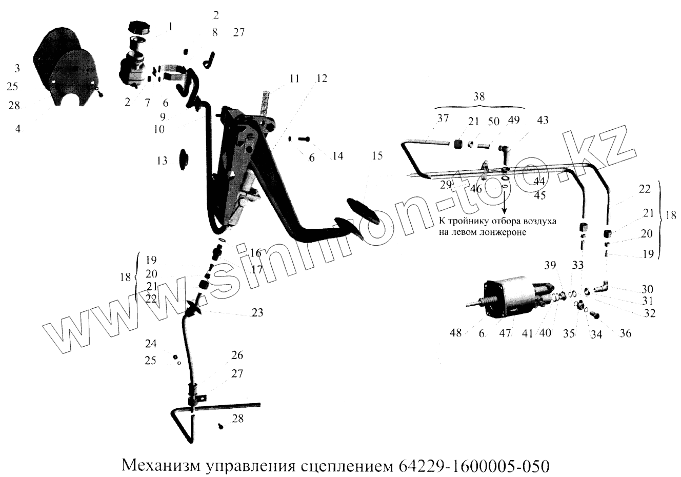 Каталог запасных частей к технике: МАЗ-5516А5. Механизм управления сцеплением 64279-1600005-050
