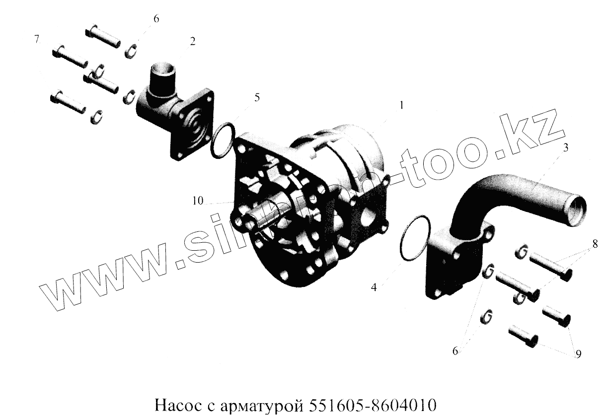 Каталог запасных частей к технике: МАЗ-5516А5. Насос с арматурой 551605-8604010