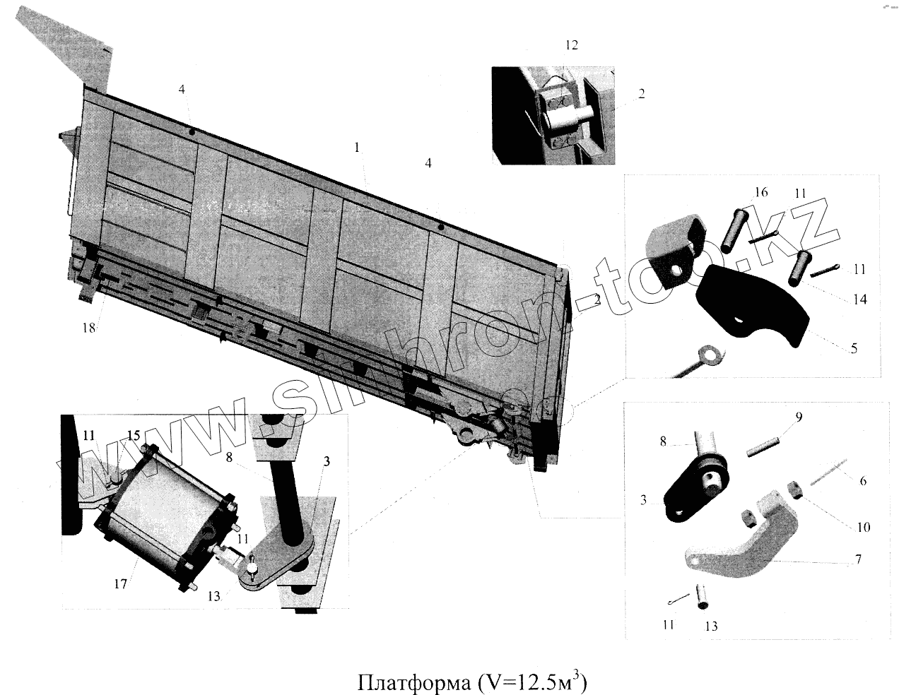 Каталог запасных частей к технике: МАЗ-5516А5. Платформа V=12,5 м3