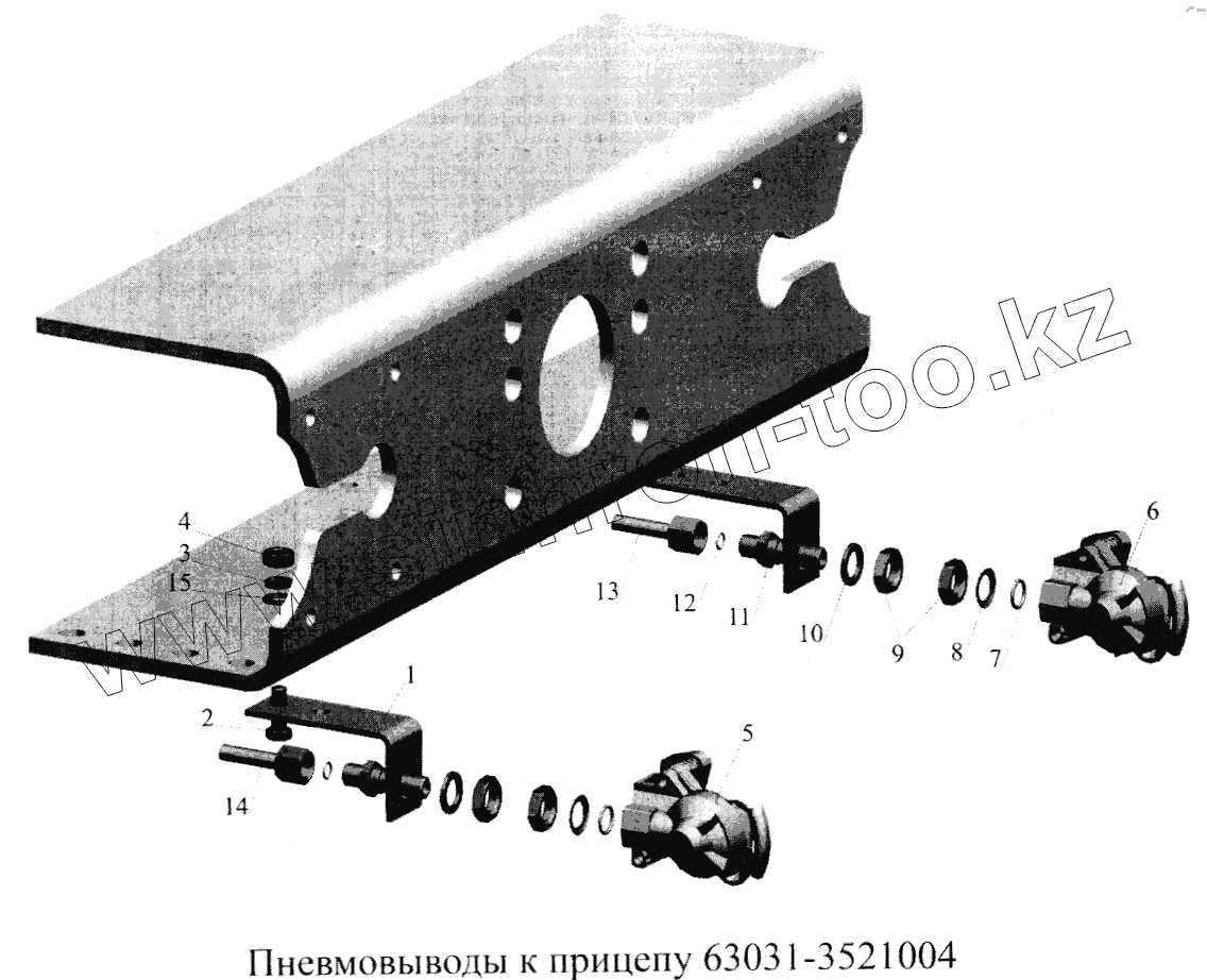 Каталог запасных частей к технике: МАЗ-5516А5. Пневмовыводы к прицепу 63031-3521004