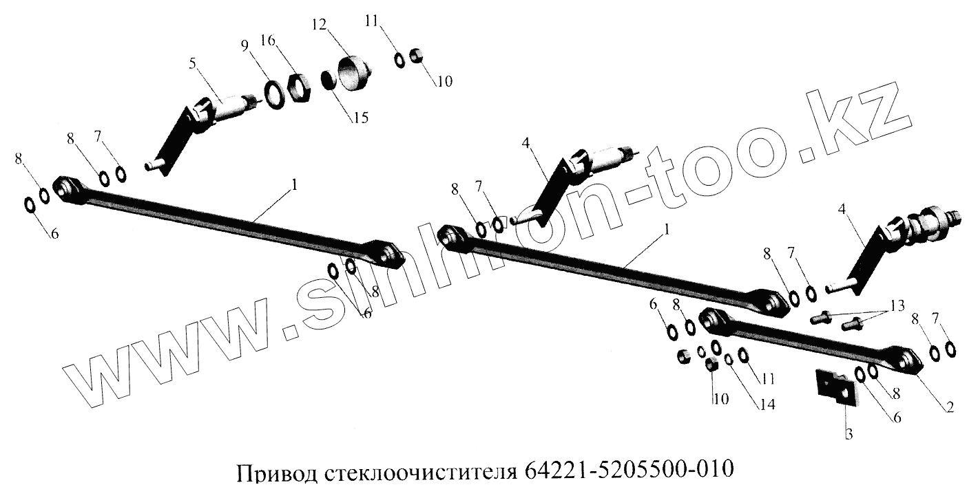 Каталог запасных частей к технике: МАЗ-5516А5. Привод стеклоочистителя 64221-5205500-010