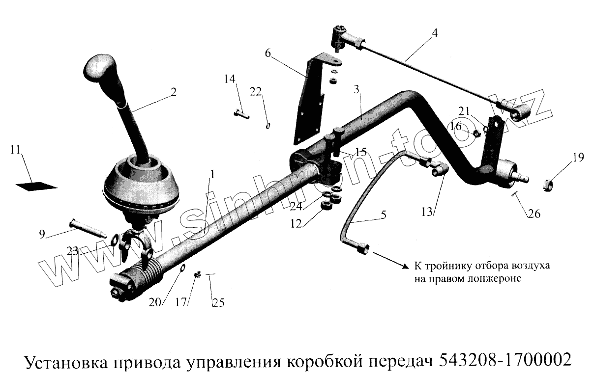 Каталог запасных частей к технике: МАЗ-5516А5. Привод управления коробкой передач 543208-1700002