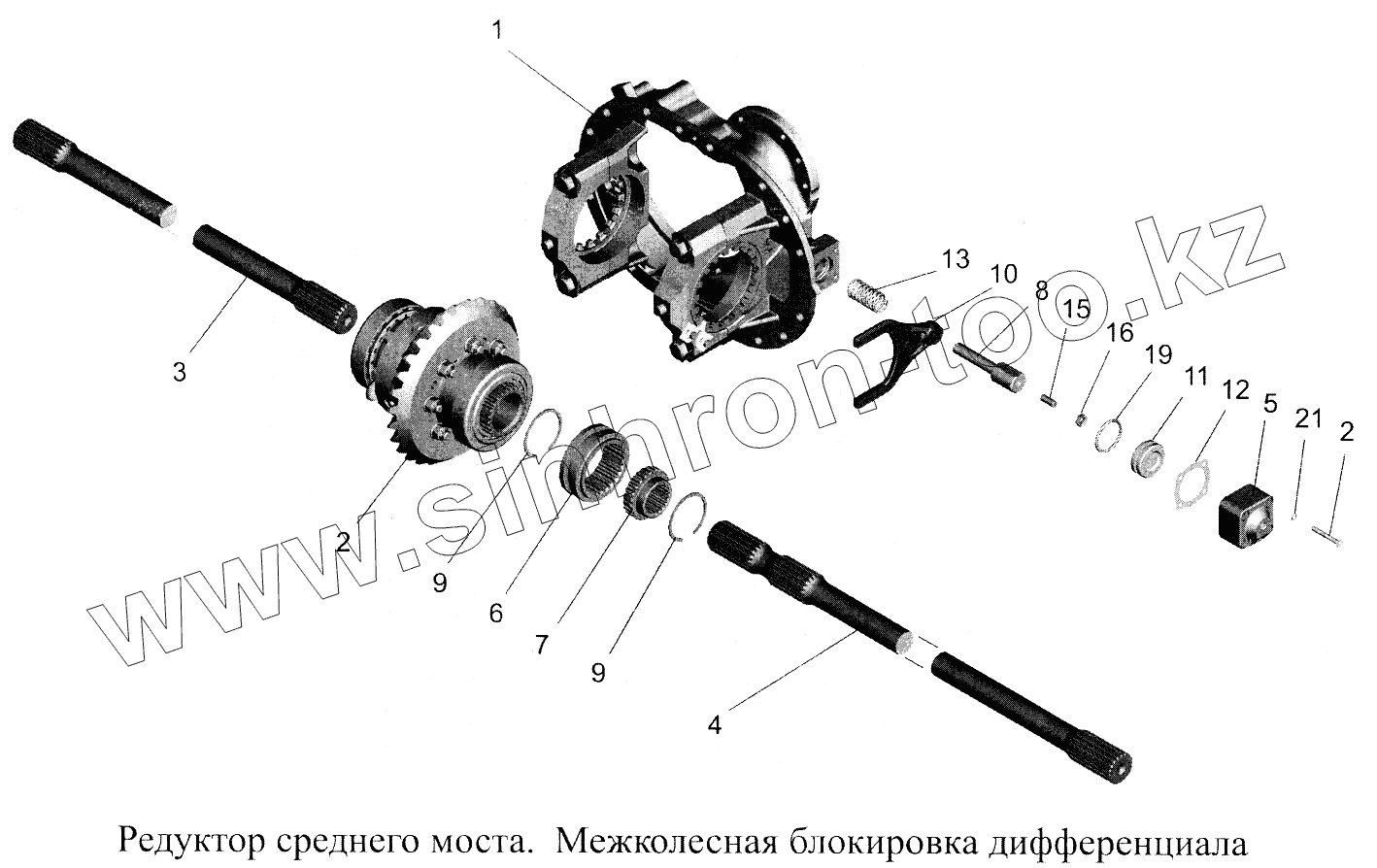 Каталог запасных частей к технике: МАЗ-5516А5. Редуктор среднего моста. Межколесная блокировка дифференциала