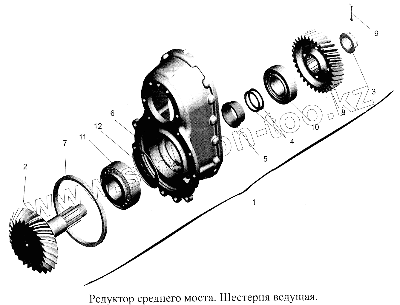 Каталог запасных частей к технике: МАЗ-5516А5. Редуктор среднего моста. Шестерня ведущая