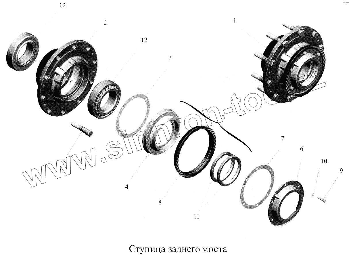 Каталог запасных частей к технике: МАЗ-5516А5. Ступица заднего моста