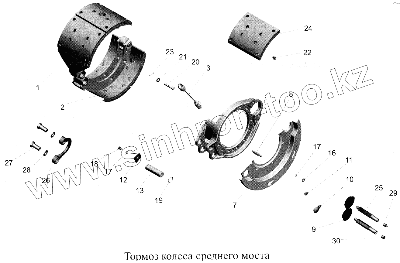 Каталог запасных частей к технике: МАЗ-5516А5. Тормоз колеса среднего моста