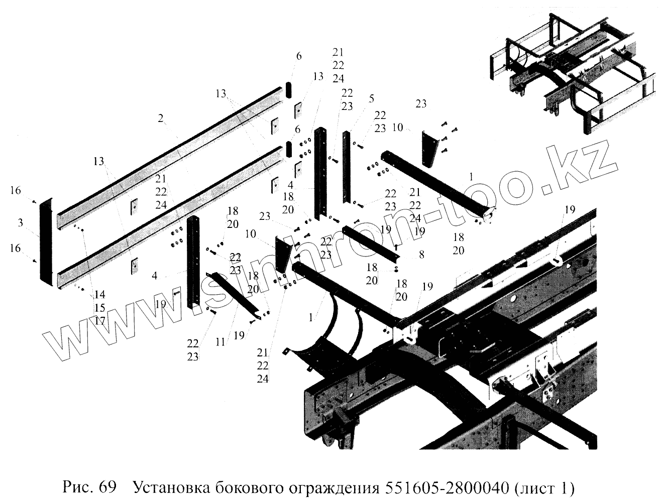 Каталог запасных частей к технике: МАЗ-5516А5. Установка бокового ограждения 551605-2800040