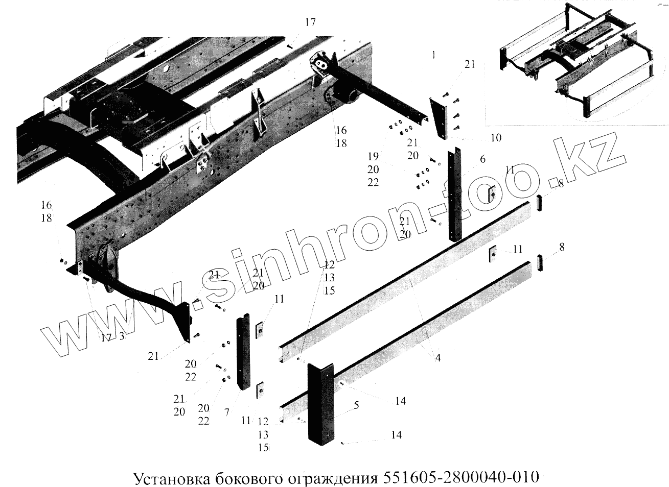 Каталог запасных частей к технике: МАЗ-5516А5. Установка бокового ограждения 551605-2800040-010