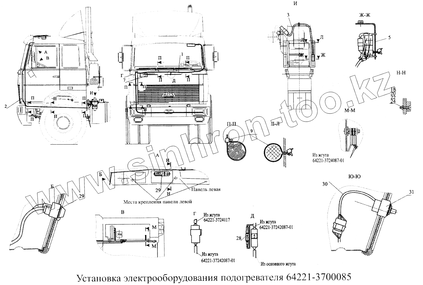 Каталог запасных частей к технике: МАЗ-5516А5. Установка электрооборудования подогревателя 64221-3700085