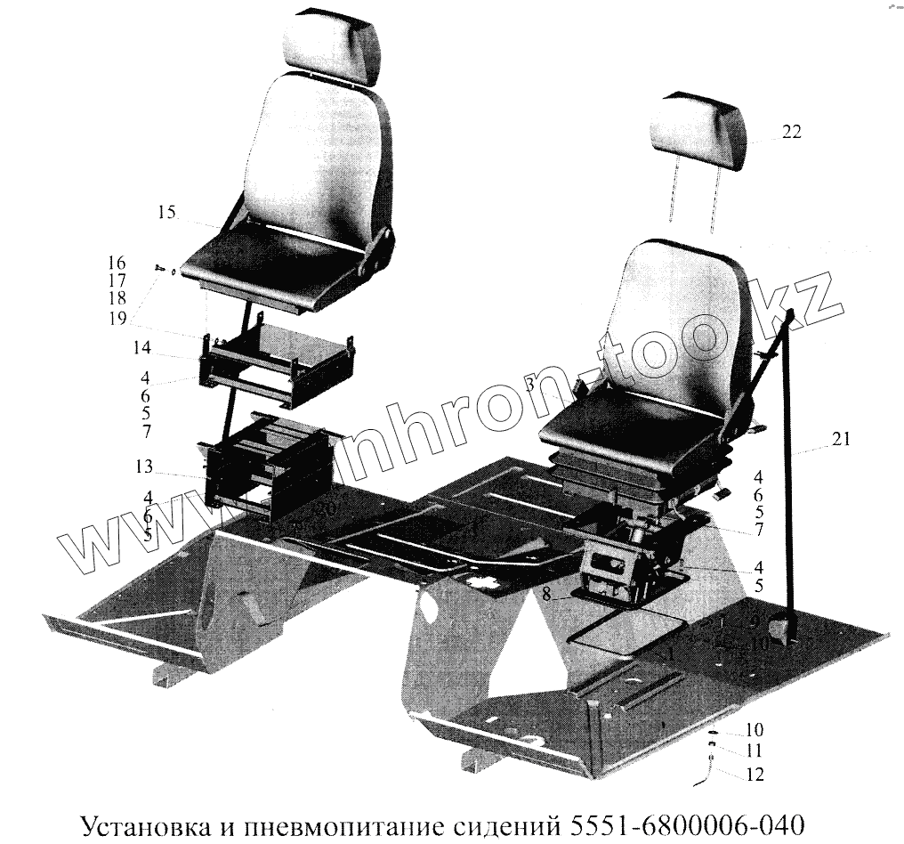 Каталог запасных частей к технике: МАЗ-5516А5. Установка и пневмопитание сидений 5551-6800006-040