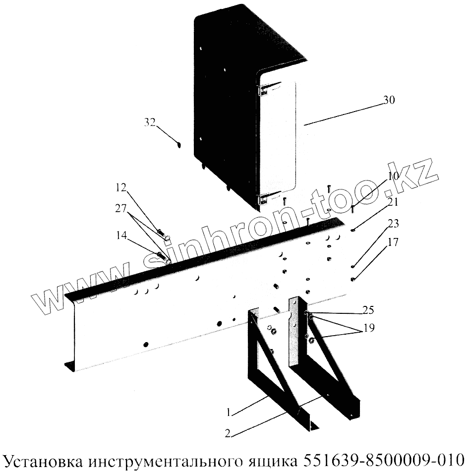 Каталог запасных частей к технике: МАЗ-5516А5. Установка инструментального ящика 551639-8500009-010
