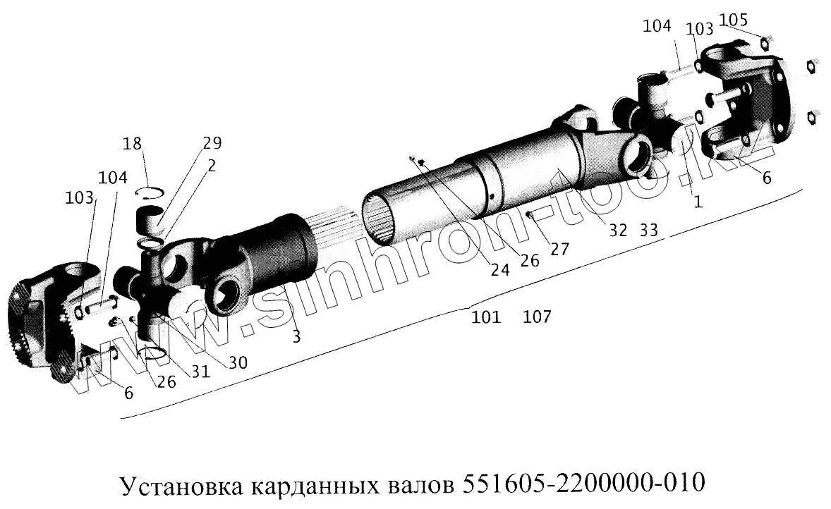 Каталог запасных частей к технике: МАЗ-5516А5. Установка карданных валов 551605-7700000-010