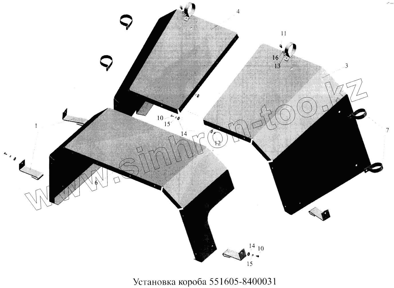 Каталог запасных частей к технике: МАЗ-5516А5. Установка короба 551605-8400031