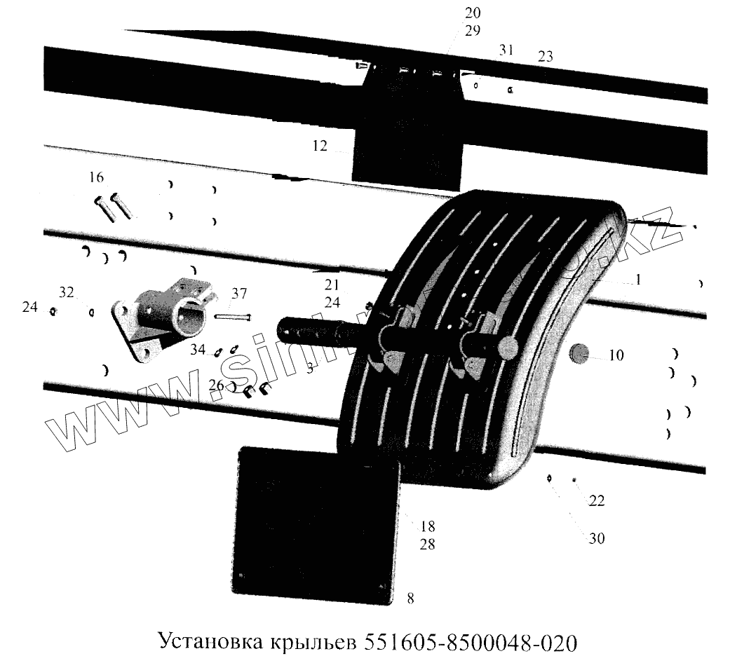 Каталог запасных частей к технике: МАЗ-5516А5. Установка крыльев 551605-8500048-020