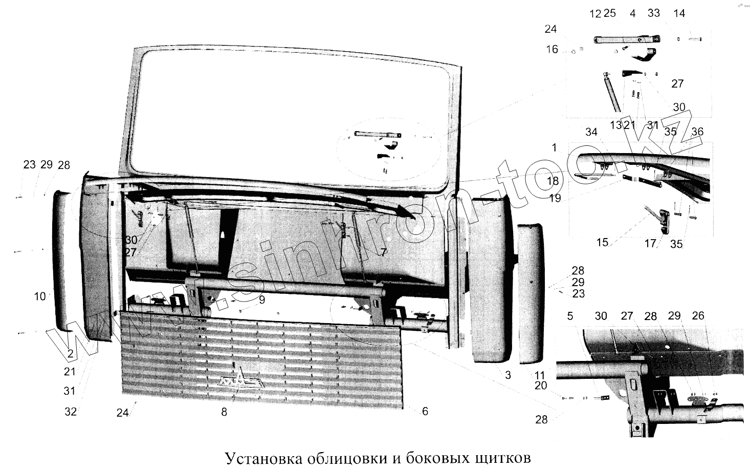Каталог запасных частей к технике: МАЗ-5516А5. Установка облицовки и боковых щитков