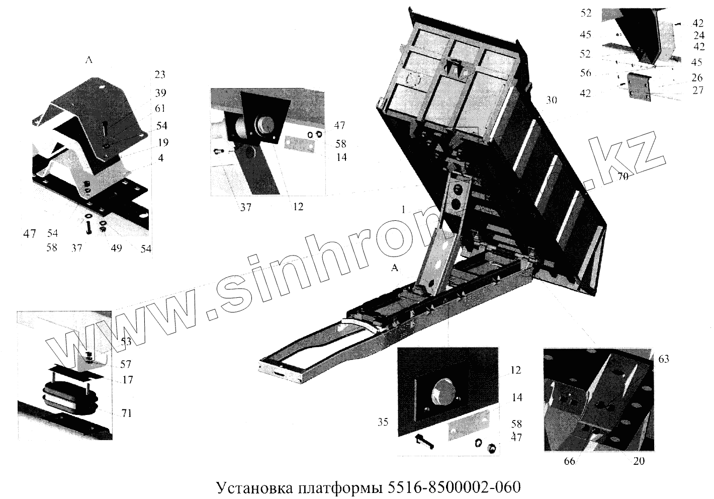 Каталог запасных частей к технике: МАЗ-5516А5. Установка платформы 5516-8500002-060