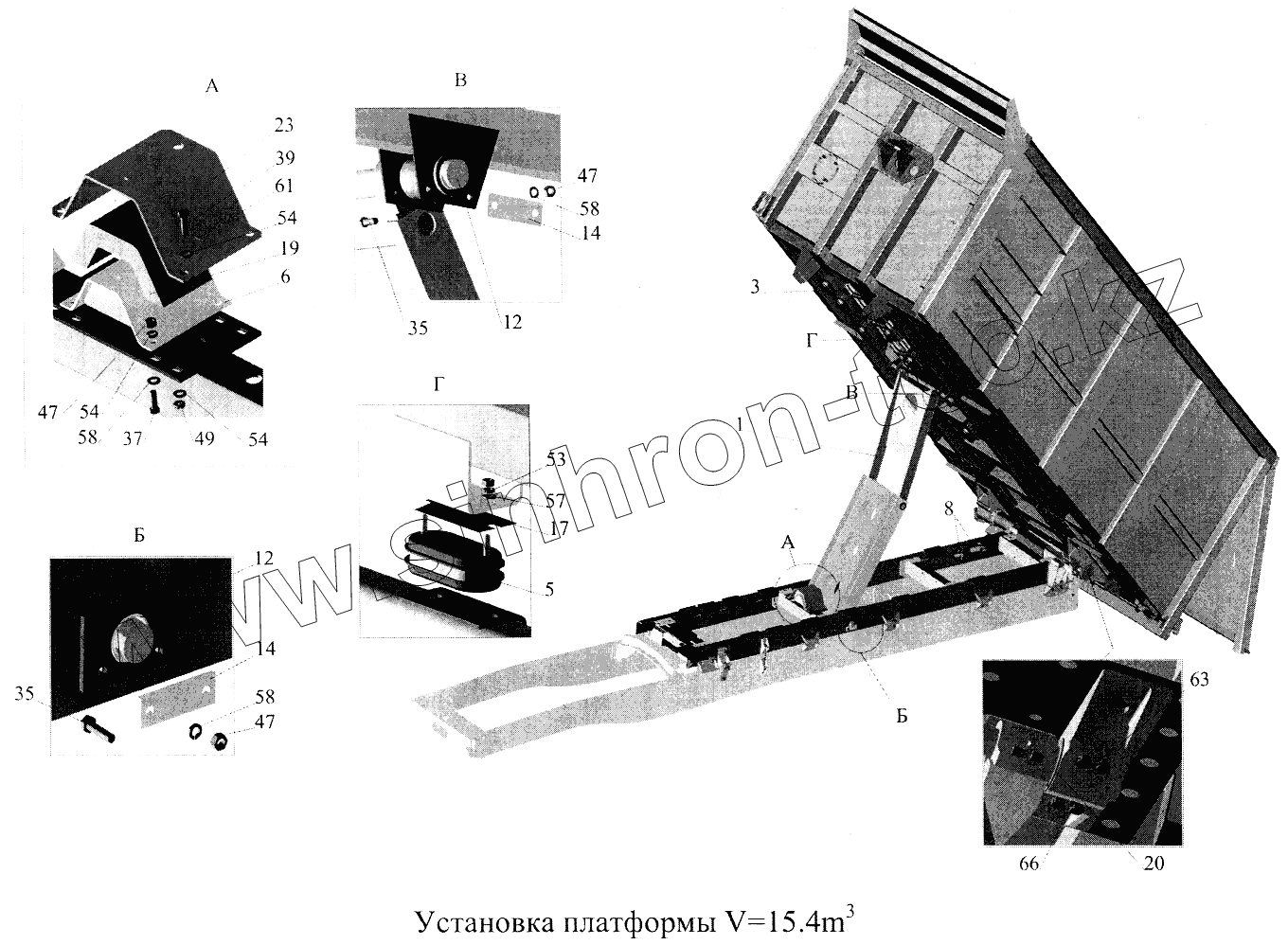Каталог запасных частей к технике: МАЗ-5516А5. Установка платформы V=15.4 м3