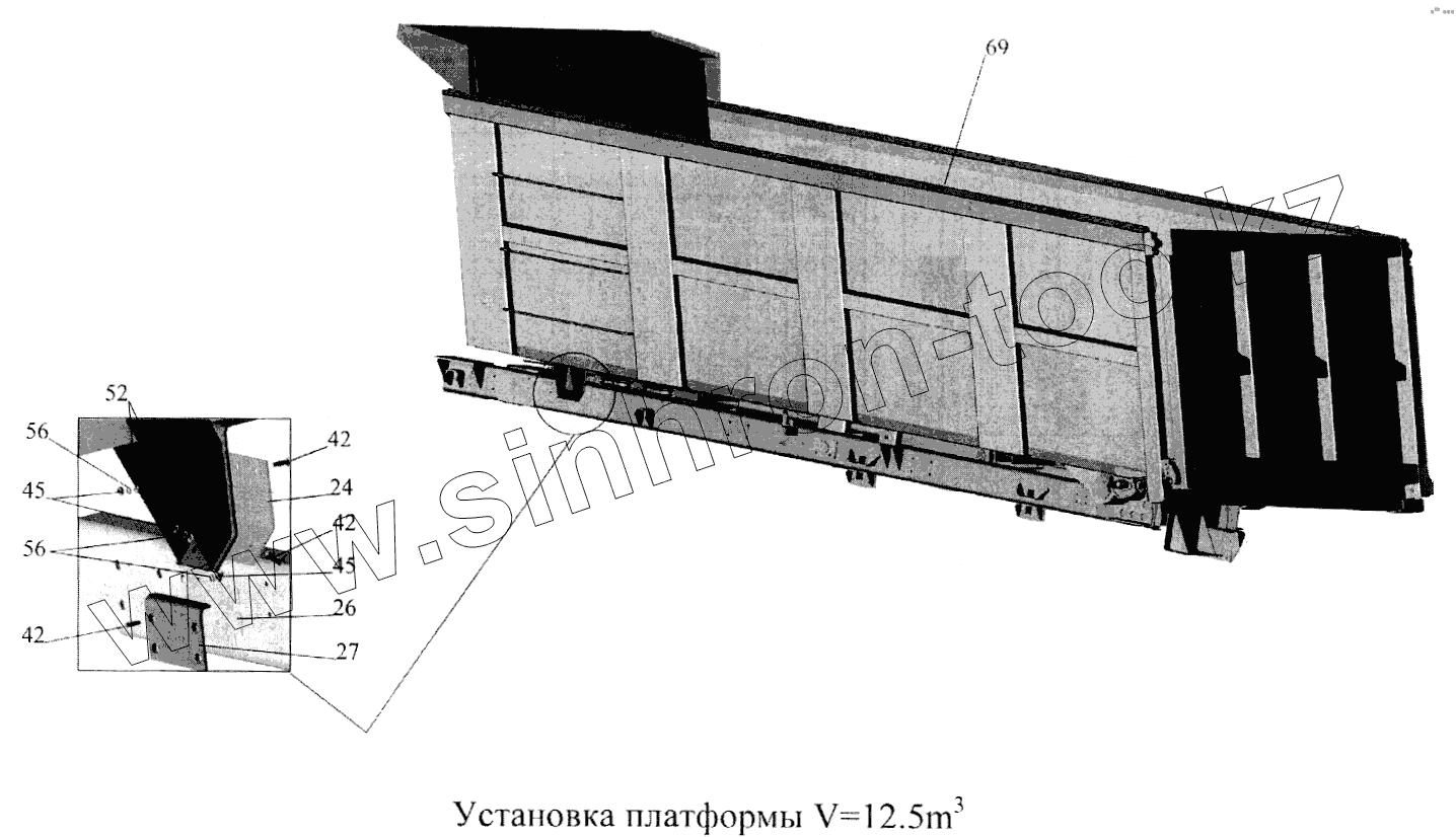 Каталог запасных частей к технике: МАЗ-5516А5. Установка платформы V=17.5 м3