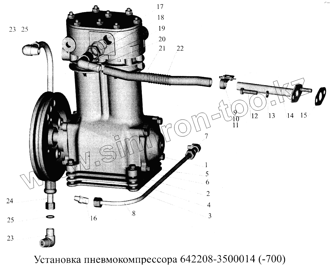 Каталог запасных частей к технике: МАЗ-5516А5. Установка пневмокомпрессора 647208-3500014 (-700)