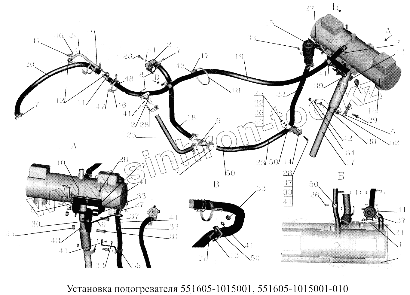 Установка подогревателя 551605-1015001. 551605-1015001-010