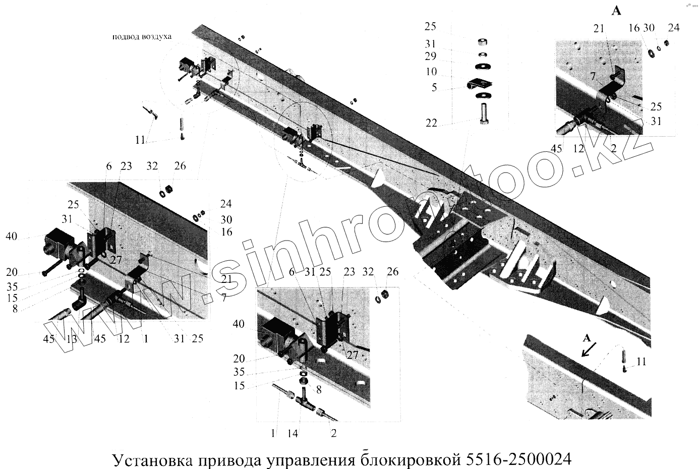 Каталог запасных частей к технике: МАЗ-5516А5. Установка привода управления блокировкой 5516-2500024